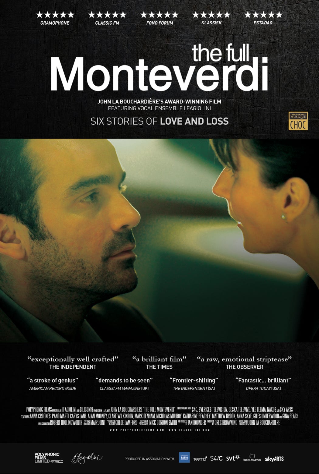 Our production of The Full Monteverdi is the film version of John La Bouchardière’s epic collaboration with I Fagiolini. It premiered at The Southbank Centre in 2007 and went on to be broadcast in over a dozen countries, play festivals across the world and released in cinemas in South Africa and New Zealand.